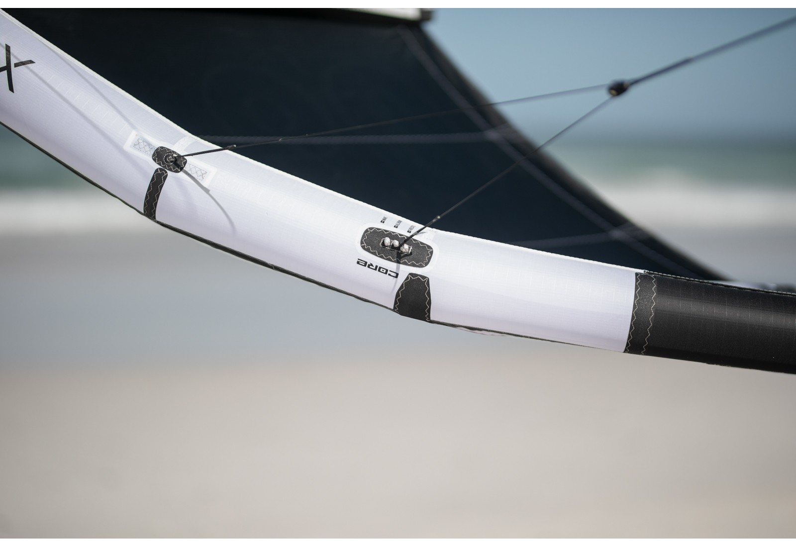 Avec la Core XR8 des impulsions explosives et une remontée au vent performante sont garanties. Grâce au matériau ExoTex 2 beaucoup plus rigide, la structure gonflable de l'aile a été affinée et autorise des diamètres de bord d'attaque et de lattes plus petits.