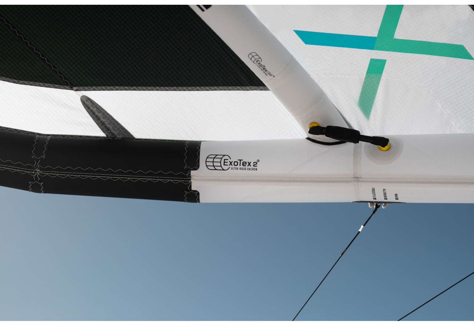 Le dacron ExoTex Light incorpore un maillage radial complété par un processus d'émulsion (revêtement protecteur) qui réduit la masse d'environ 10 %. Tandis que le nouvel ExoTex 2 ultra résistant est utilisé pour le bord d'attaque, l’ExoTex Light des lattes améliore la vitesse de dérive et de virage de la core XR8, ce qui la rend parfaite pour les freestylers et les adeptes de vagues qui apprécient ces caractéristiques clés.