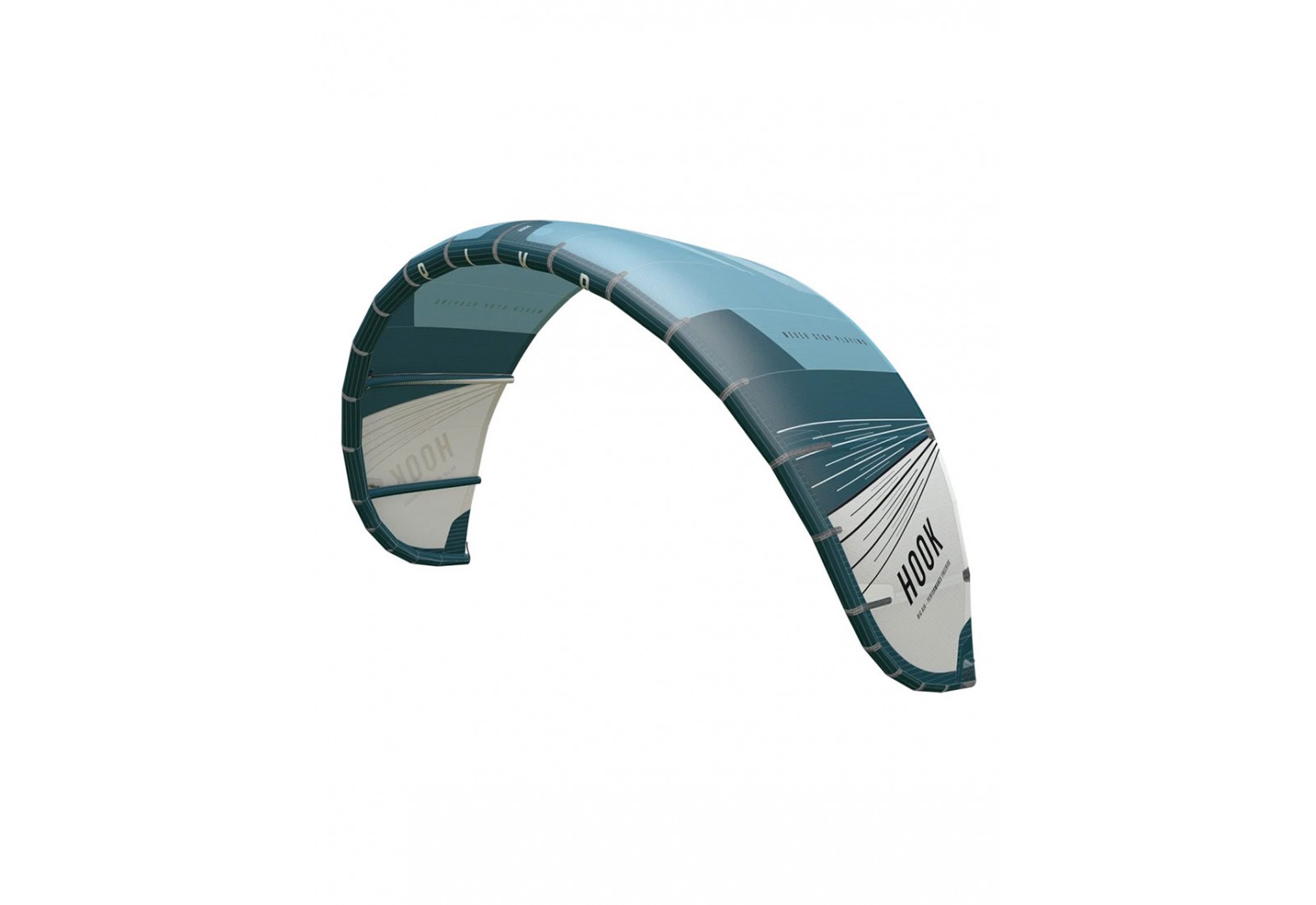 L'aile de kitesurf Peter Lynn PLKB Hook V4 est conçue avec une construction à 5 lattes, optimisée pour un temps de vol maximal, une vitesse accrue et des capacités de cap en amont.