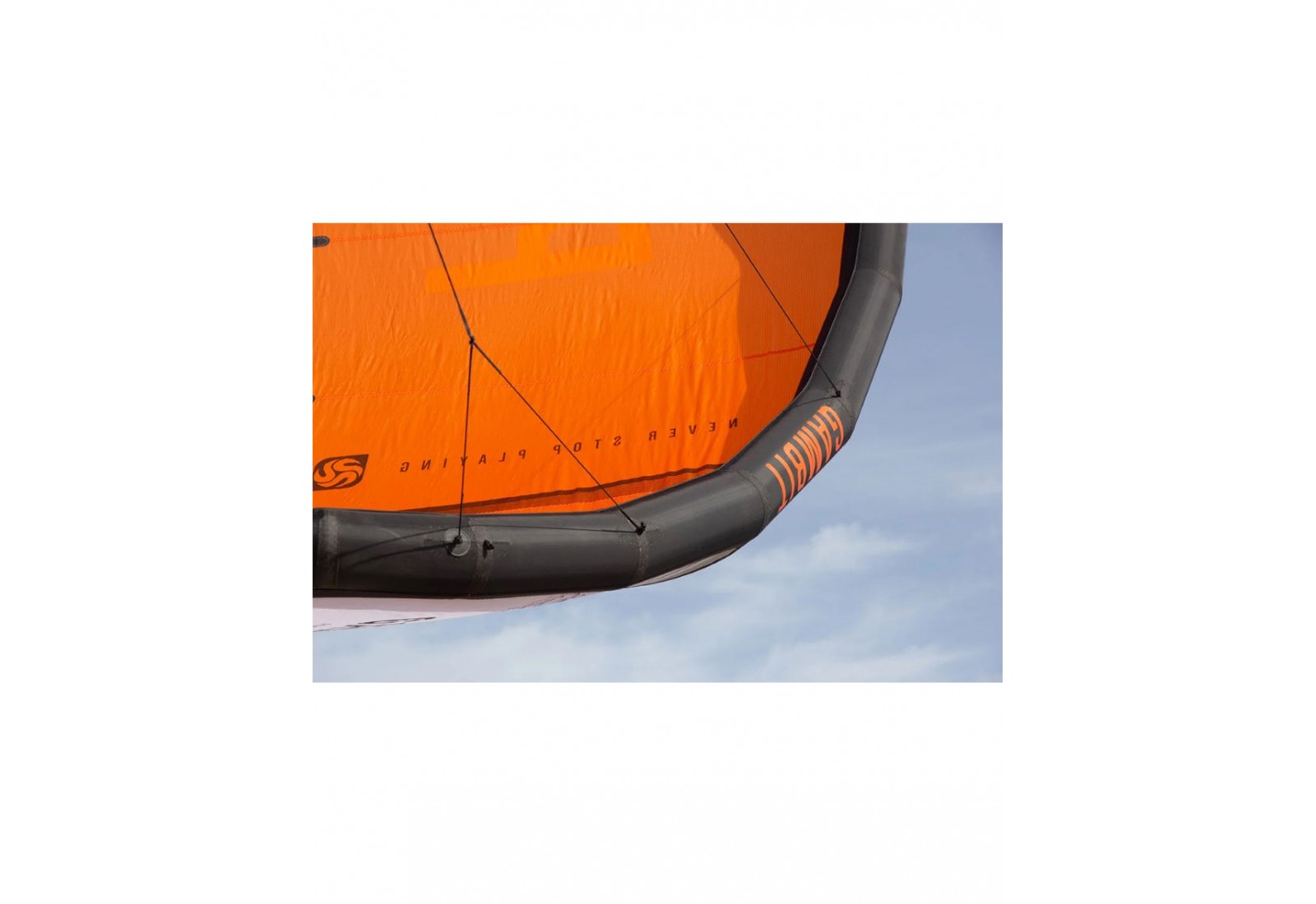 L'ensemble du bord d'attaque a été renforcé le long de la couture par des surpiqûres doubles pour éviter les dommages lors des chutes ou des impacts avec les vagues, faisant de ce kite l'un des plus robustes du marché.