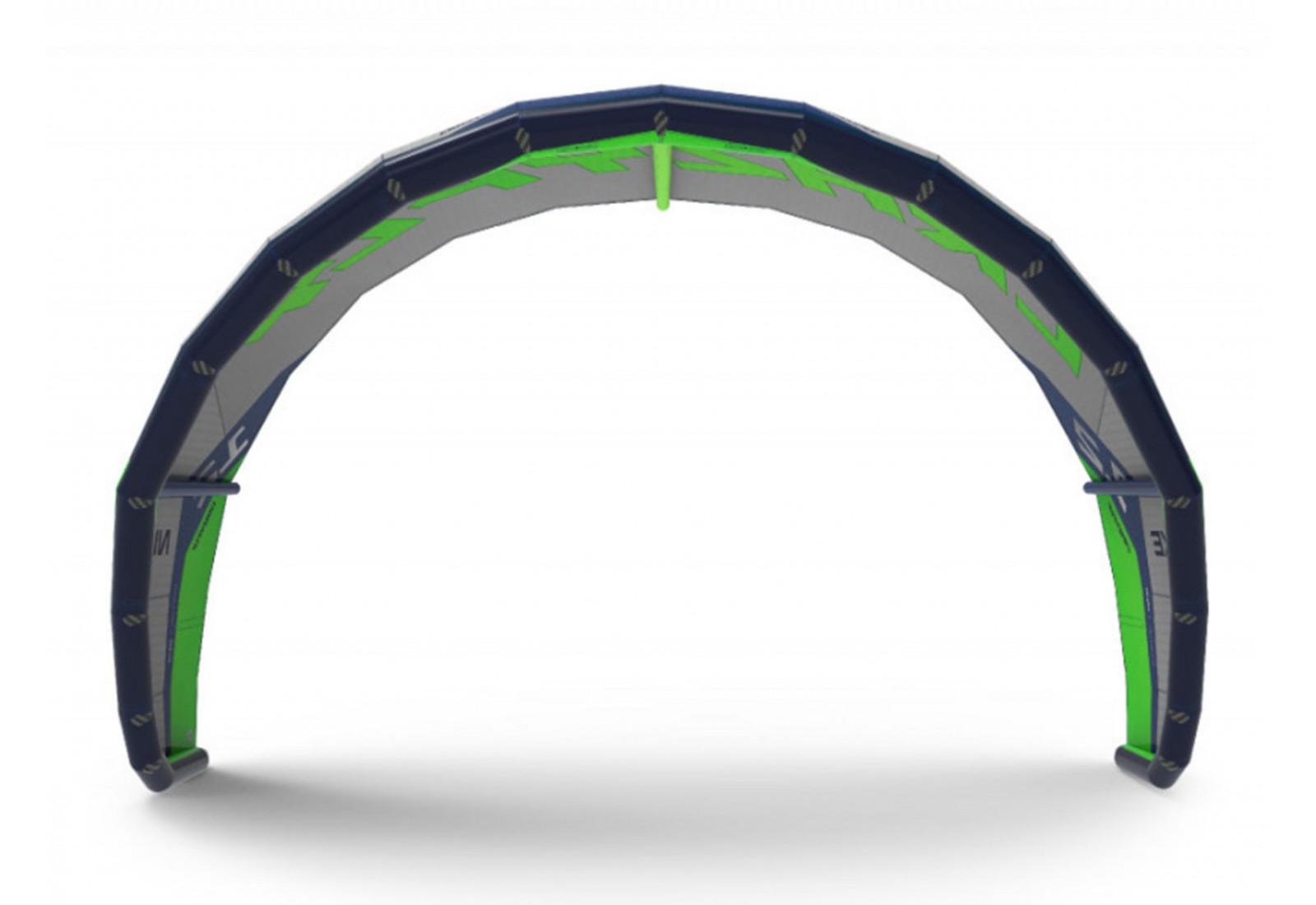 En revanche, les extrémités des ailes sont plus fermées et presque en ligne droite et carrées, à l'image d'une aile en C traditionnelle. Cette combinaison unique donne une aile très réactive, performante dans les virages rapides et pivots, idéale pour les kiteloops, les doubles loops, les S-loops et autres figures de big air de pointe.