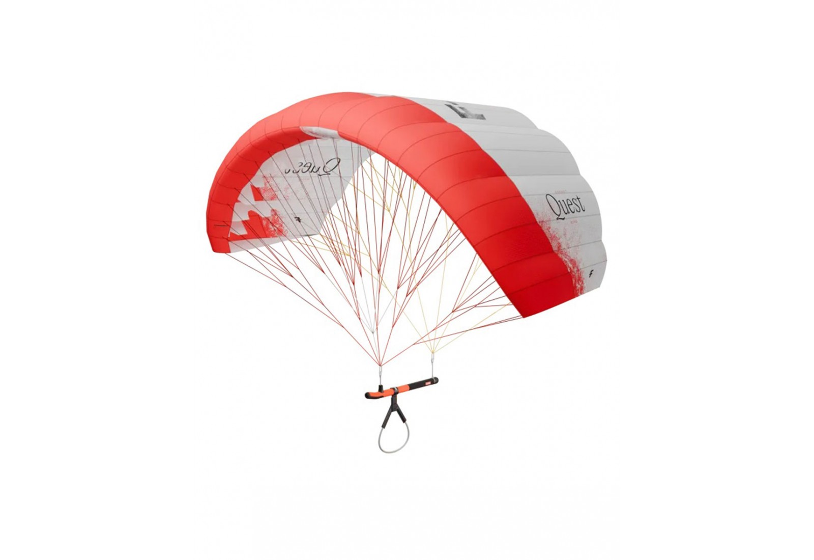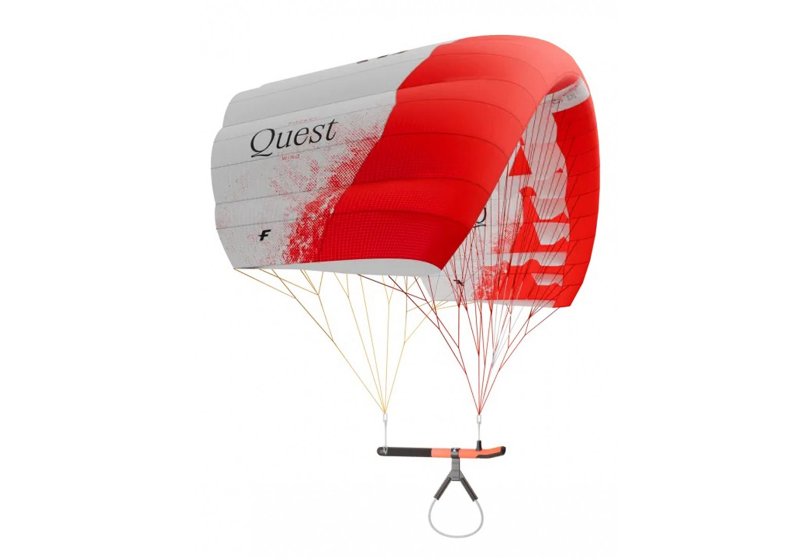 Moins nerveuse que la FRIGATE, elle compense largement par son confort et son contrôle, pour vous laisser viser les bumps en toute confiance. La QUEST intègre un bridage double dynamique ("Double Dynamic Bridle System") qui rend l’aile plus directe et plus simple à piloter tout en réduisant encore le risque d’emmêlement. Ce système procure un contrôle intuitif de la puissance et un retour en barre précis. Les débutants apprécieront la meilleure sensibilité de la main arrière et un depower facile qui simplifie les premières sorties.