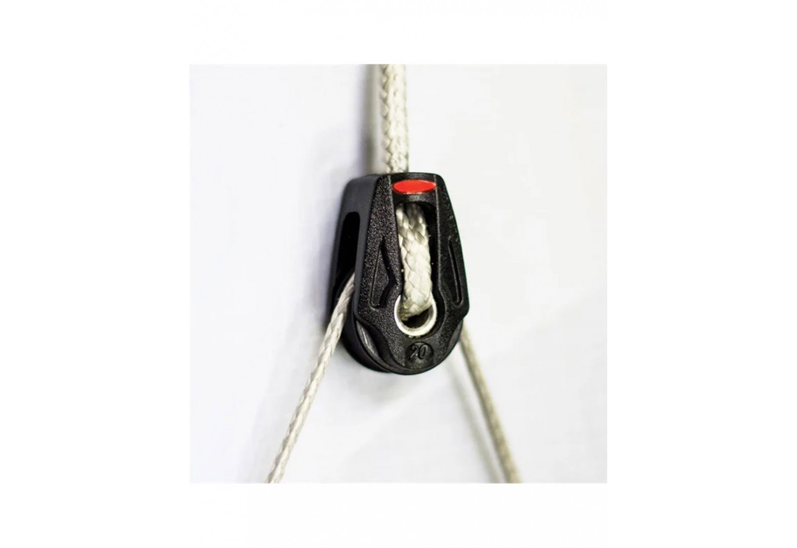Le système de vitesse de l'aile de snowkite Peter Lynn PLKB Ibex est équipé de poulies Ronstan® Orbit 2×2, qui allient légèreté et robustesse.