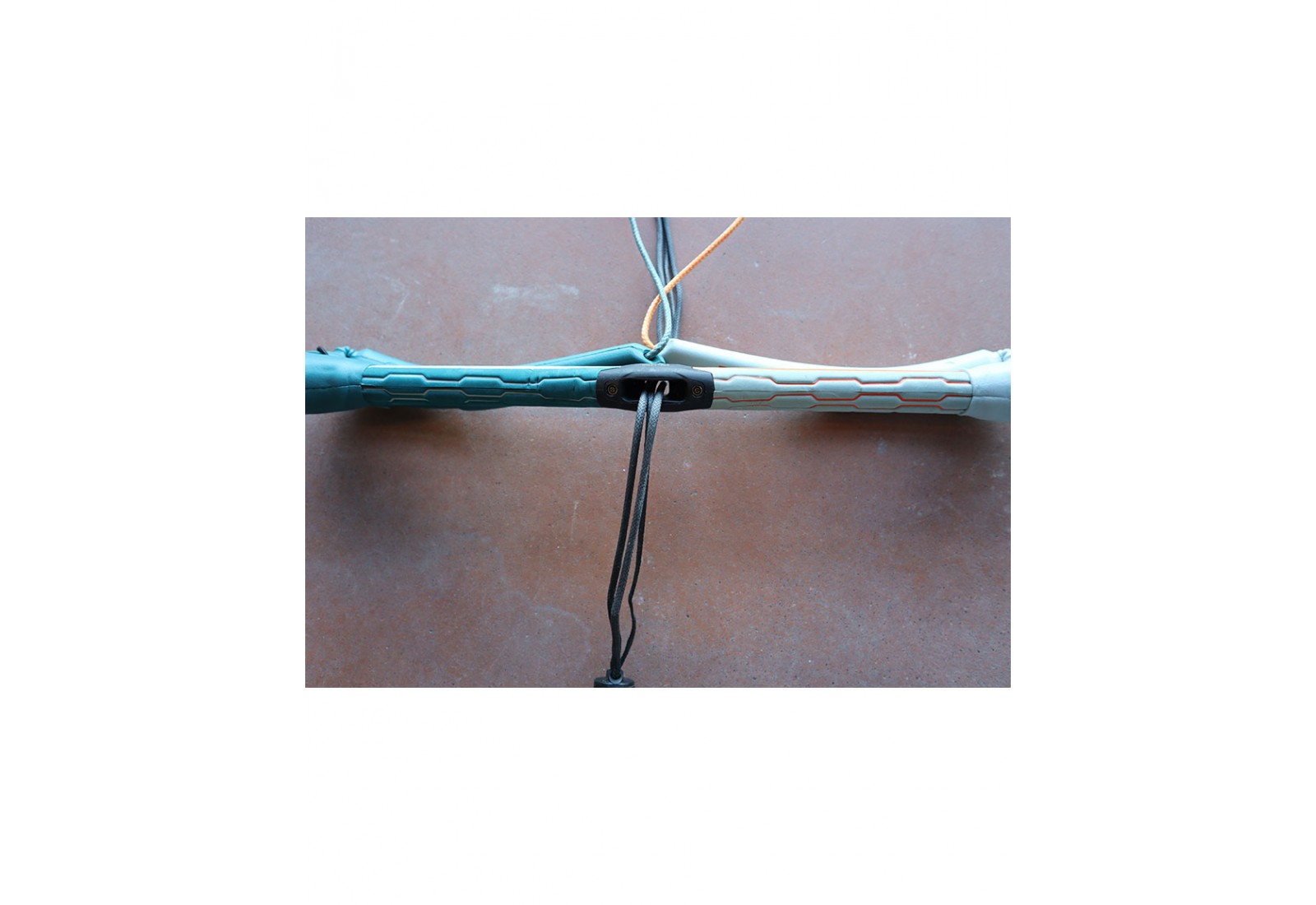 Enfin, les ends caps de la barre de kitesurf Flysurfer force control bar sont fabriqués à partir de polyamide renforcé de fibre de verre et recouverts d’un rembourrage en EVA moulé pour les protéger. Au centre de ceux-ci et en appuyant simplement sur un bouton vous accédez aux options de réglage de largeur de la barre. Cela vous permet de régler la largeur de la barre en fonction de vos préférences personnelles ainsi que de l'aile de kitesurf que vous utilisez. Il existe également des options de réglage de la longueur à l'intérieure des End Caps.