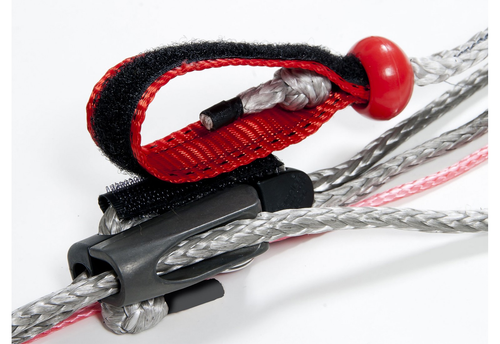 La poignée de trim permet de trimmer l'aile plus facilement (autrement dit : elle permet de réduire plus facilement la puissance du kite). De plus, elle est munie d'un velcro qui évite à la corde de se balader une fois que vous avez trimmé. Il suffit de « coller » la poignée au taquet coinceur sur le velcro. Vous l’aurez à portée de main en permanence !