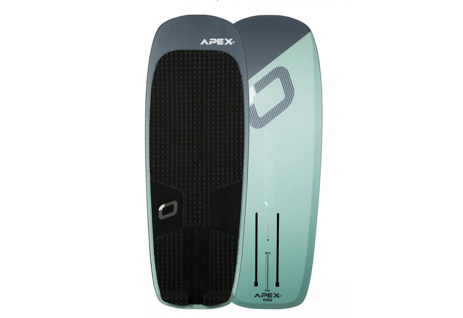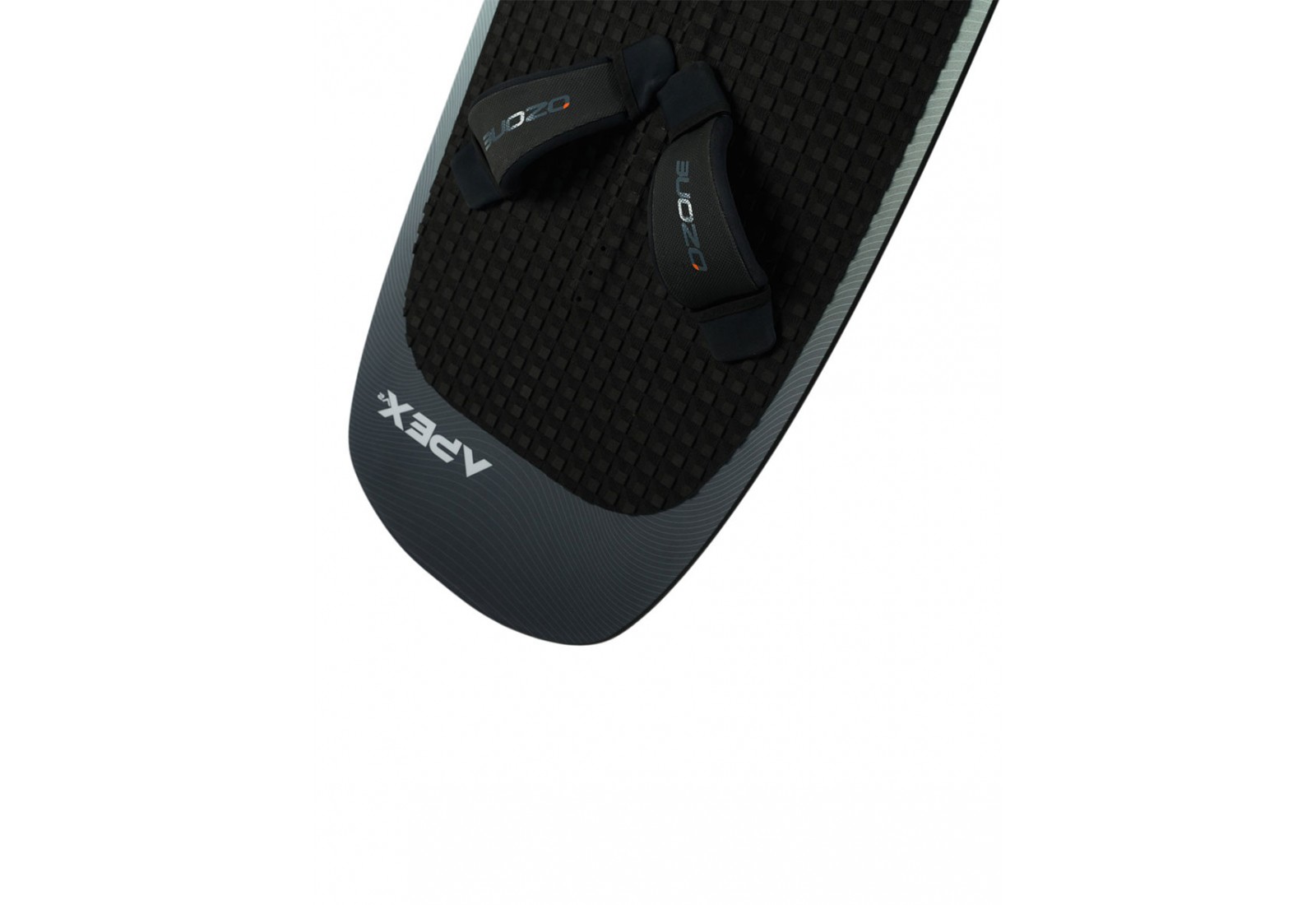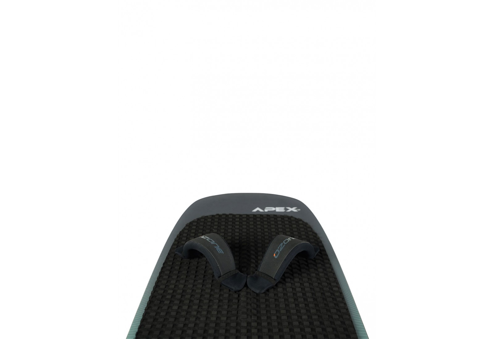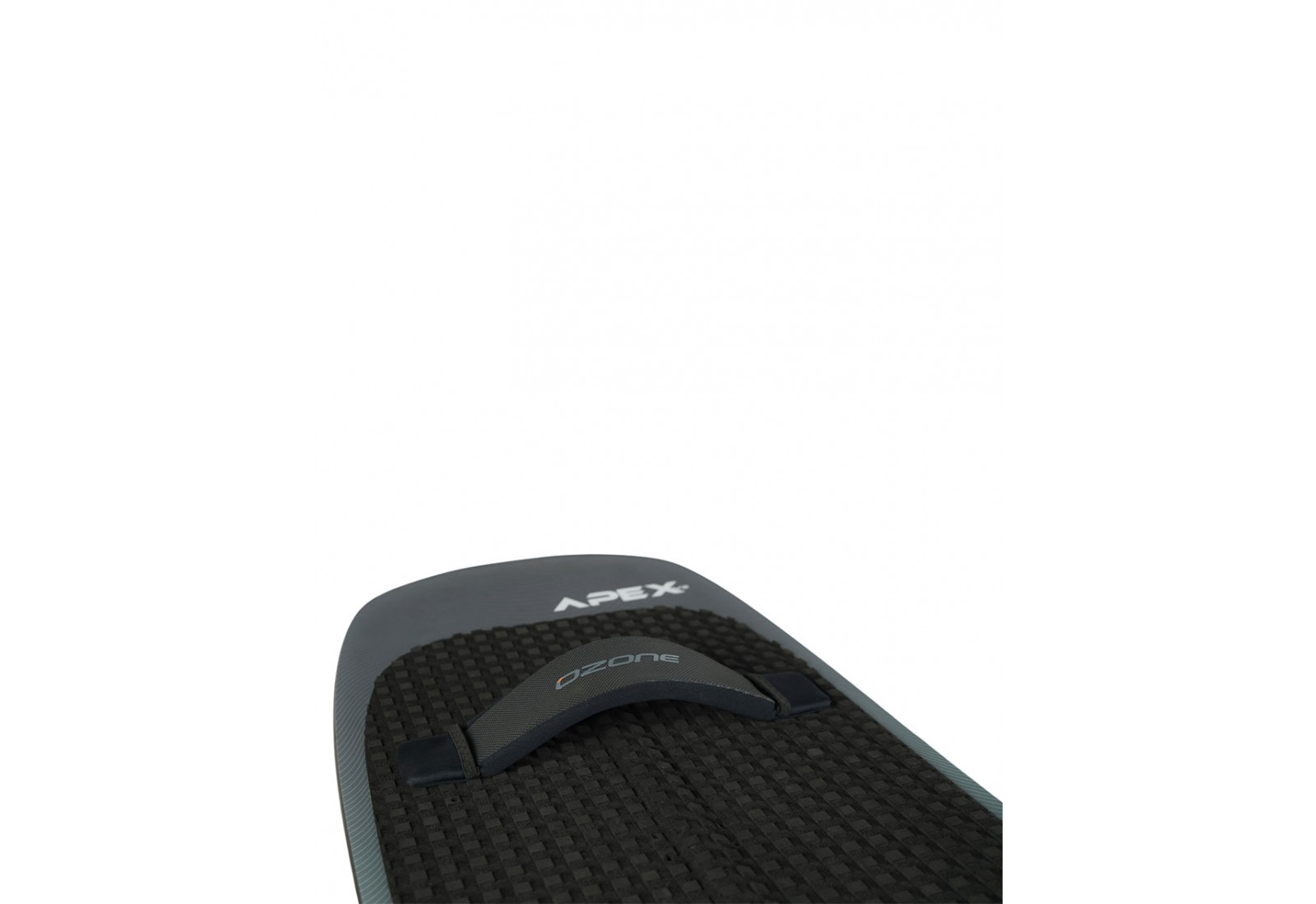 La planche d'hydrofoil et de kitefoil Apex V2 d'Ozone est dotée d'un grand deckpad en EVA avec des renforts avant et arrière et un large tail kick, offrant une prise en main confortable et une référence intuitive pour le placement des pieds.