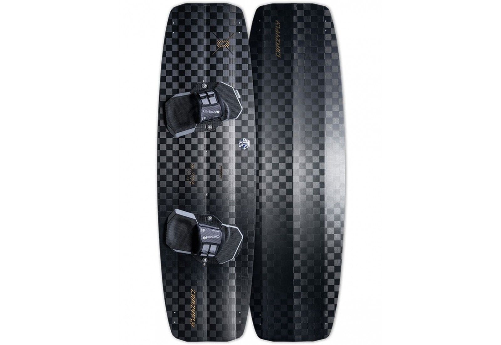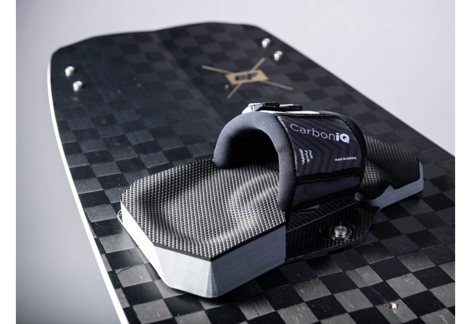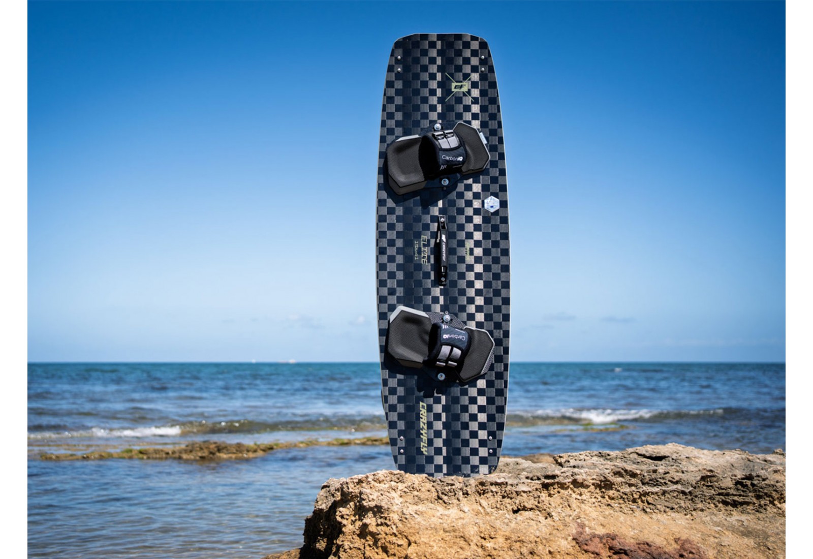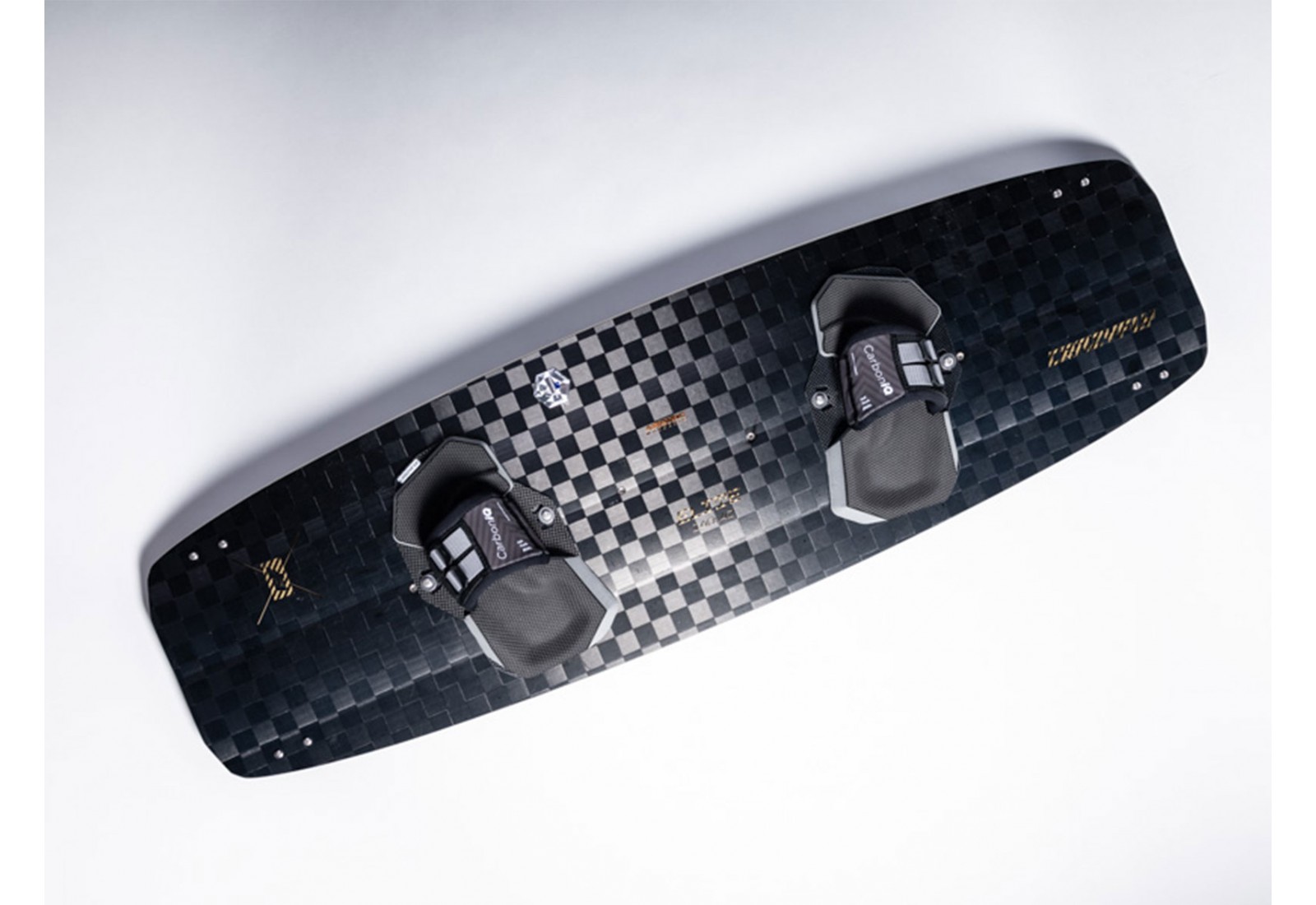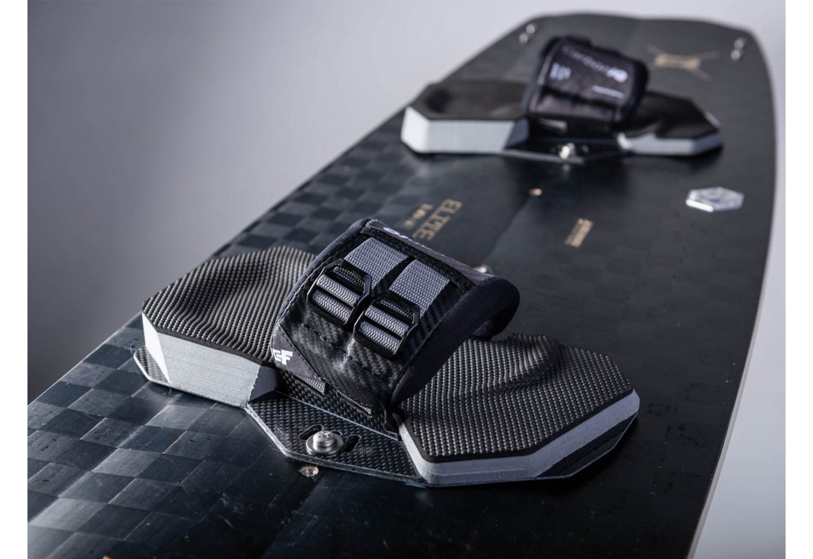 La planche de kitesurf Elite V de CrazyFly est dotée d'une toute nouvelle fixation Carboniq, pesant seulement 0,66 kg, ce qui en fait la fixation la plus légère au monde.
