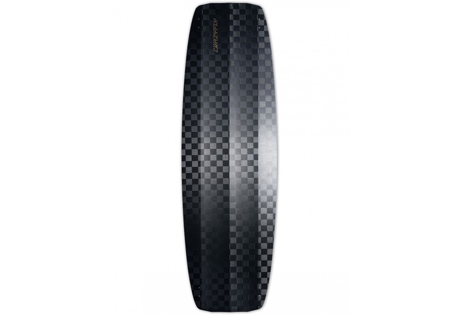 La structure de la planche de kitesurf Elite V 2025 de CrazyFly est composée de deux couches de carbone en haut et deux en bas.