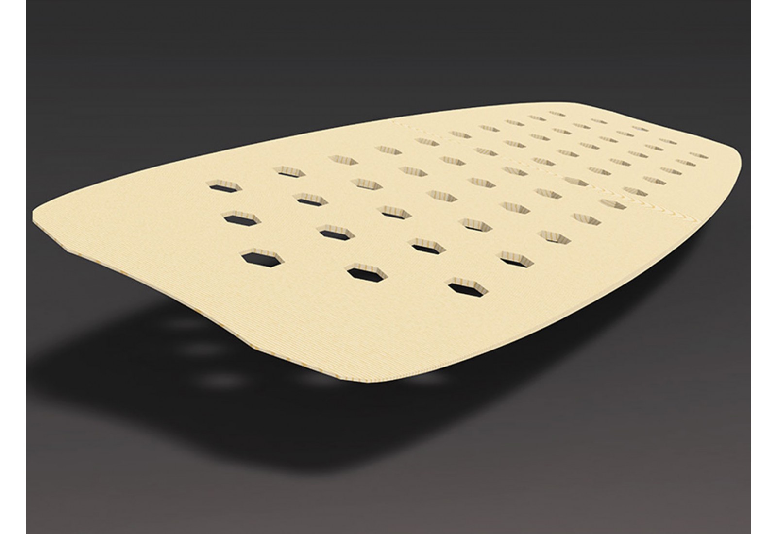 La structure se compose de deux couches de carbone sur la partie supérieure et de deux autres sur la partie inférieure : la première couche, en carbone CompFlex 4T5, avec des fibres inclinées à 45 degrés, assure une flexion optimale et renforce la rigidité de la planche.