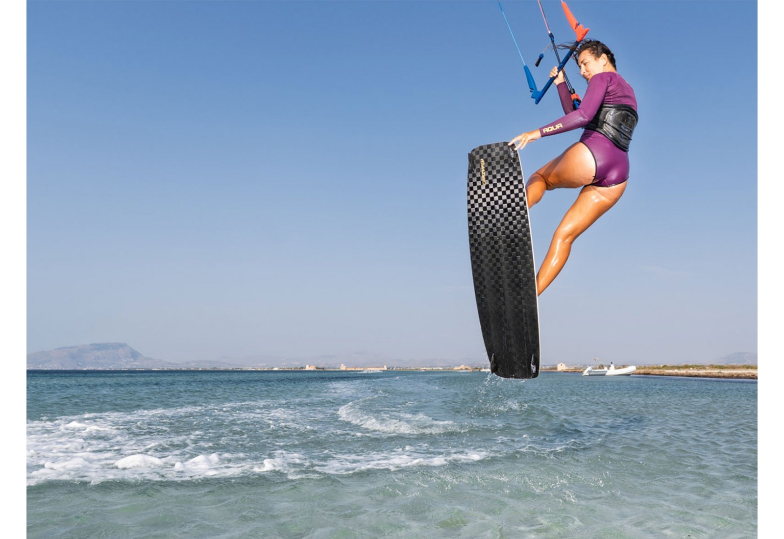 Cette kiteboard combine les caractéristiques dynamiques d'une planche en carbone avec un pop incroyable et un flex souple et confortable.