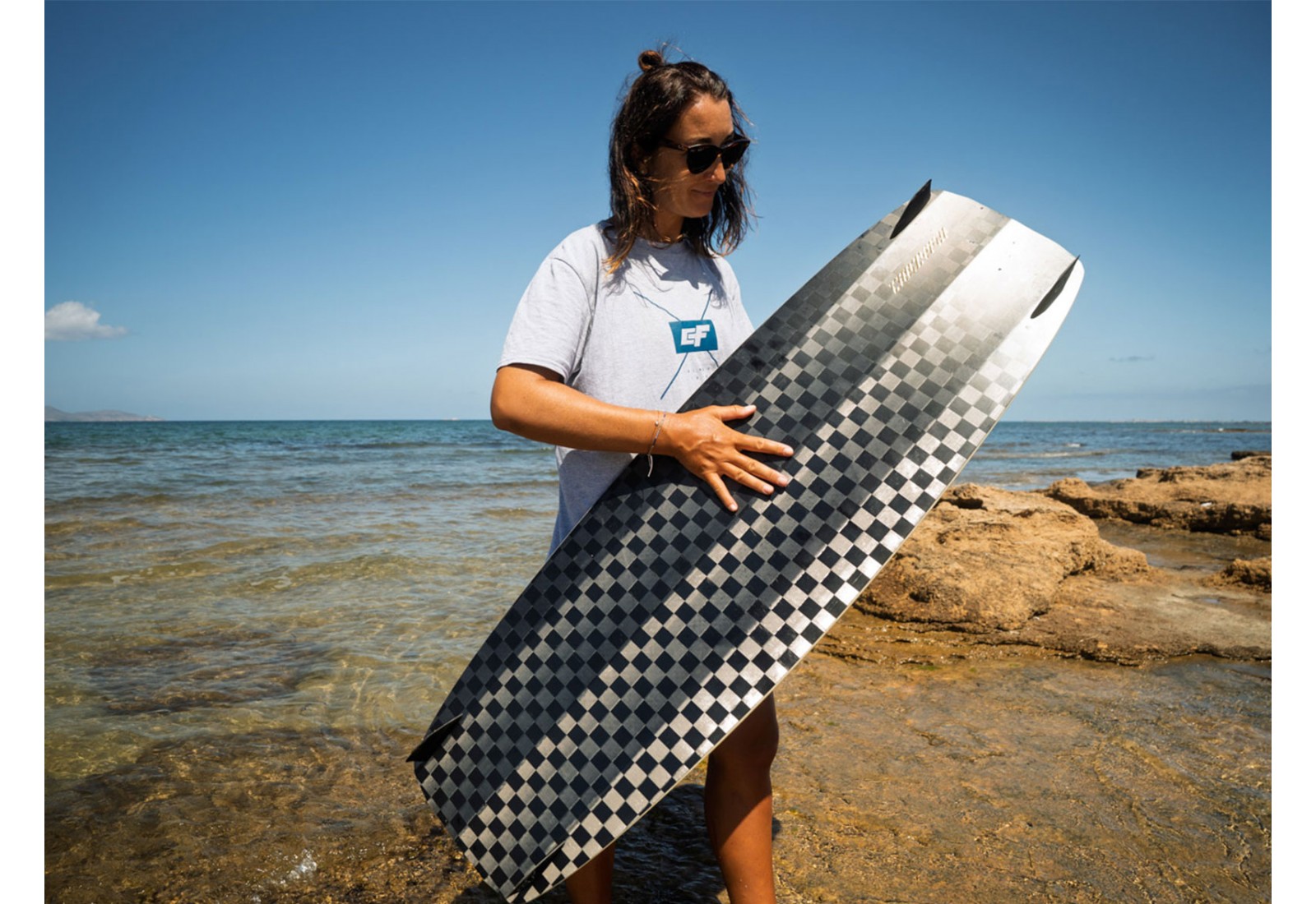 Elle est complétée par le carbone HMX-CF3, le plus fin, le plus léger et le plus résistant à la traction, garantissant une robustesse sur toute la longueur de la planche.