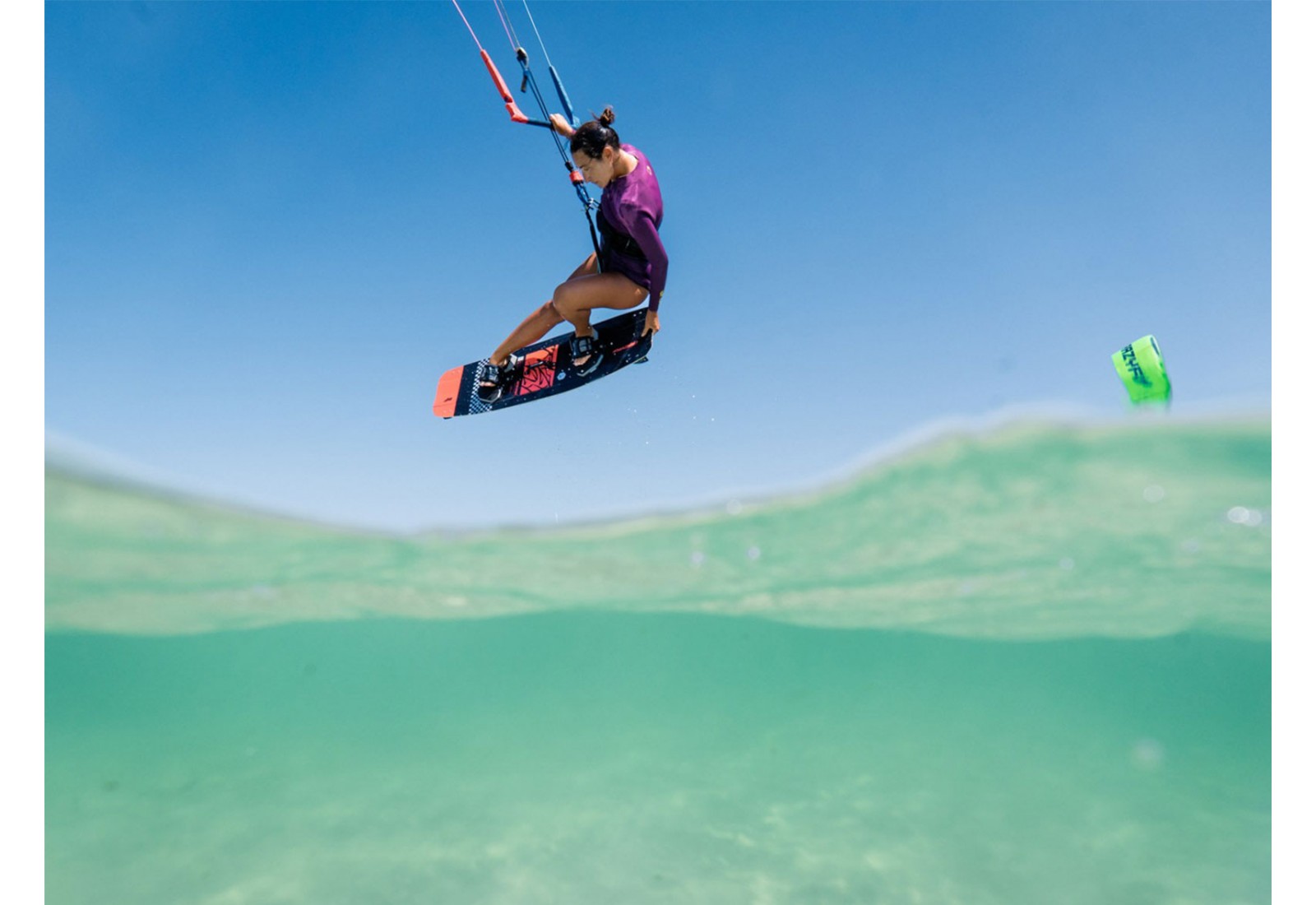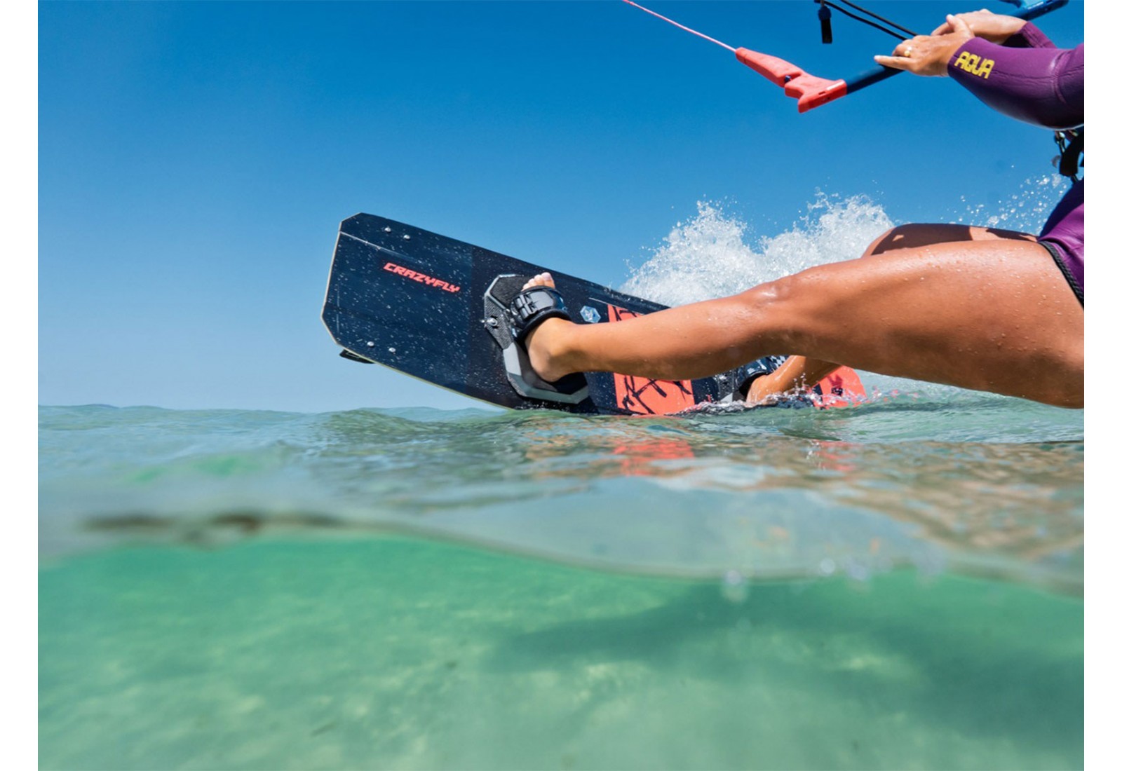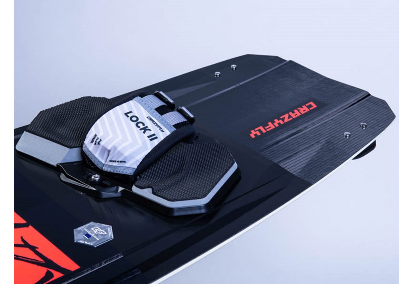 Une autre de ses caractéristiques distinctives est la semelle inférieure en feuille de wakeboard : extrêmement robuste et durable, elle est parfaitement adaptée aux exigences de la planche de kitesurf Raptor Extreme 2026 de CrazyFly.