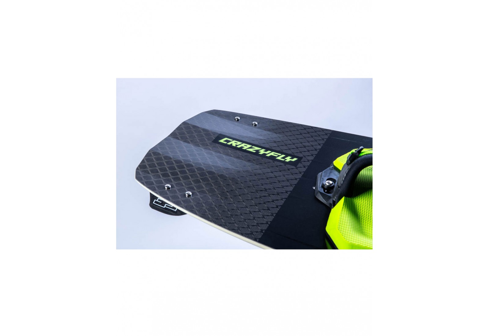 Les inserts invisibles de la planche de kitesurf CrazyFly Raptor LTD Néon 2026 sont innovants et créent une surface lisse et unifiée sur le dessous de la planche.