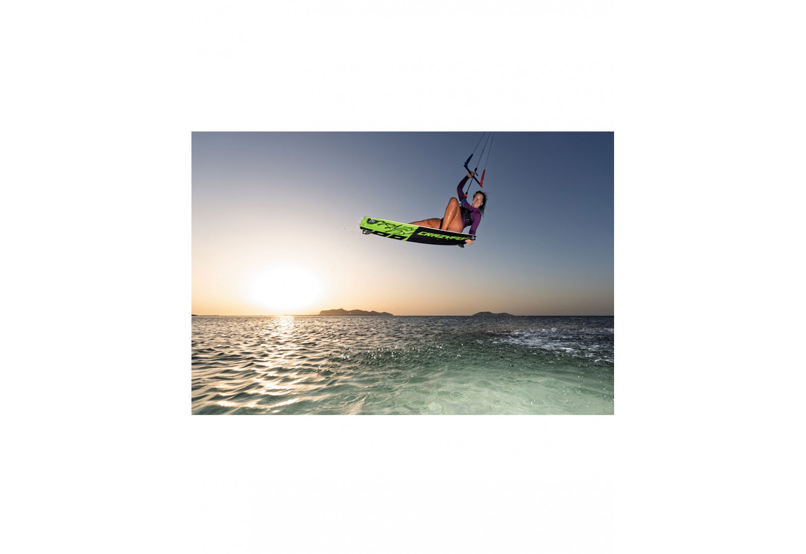 La planche de kitesurf CrazyFly Raptor LTD Néon 2026 en carbone NW offre donc une sensation dynamique et sportive et allie à la perfection maintien et performance sportive.