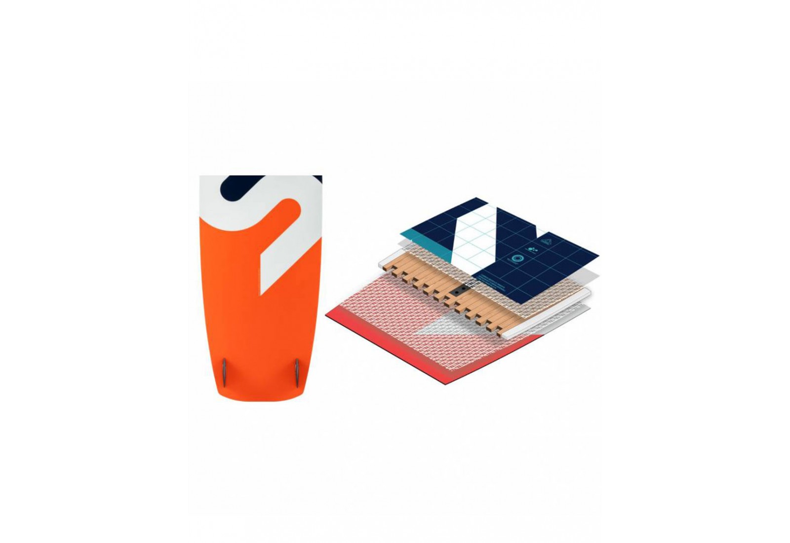 Le hull en single-concave (carène simple concave) offre une accroche sécurisée tout en adoucissant le passage dans le clapot. Associé à un rocker progressif, il facilite le départ au planning et optimise la remontée au vent.