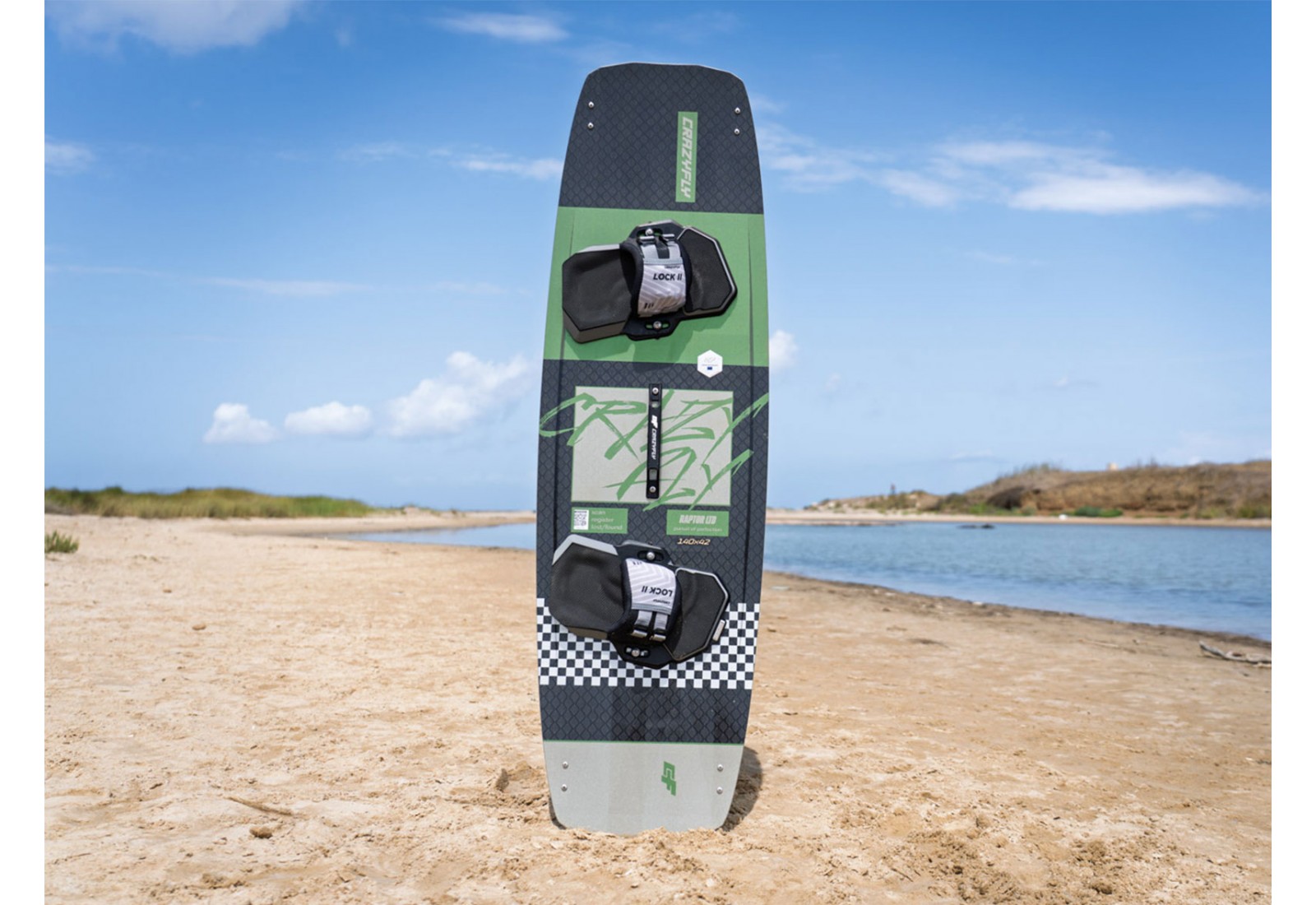 La planche de kitesurf CrazyFly Raptor LTD 2026 en carbone NW offre donc une sensation dynamique et sportive et allie à la perfection maintien et performance sportive.