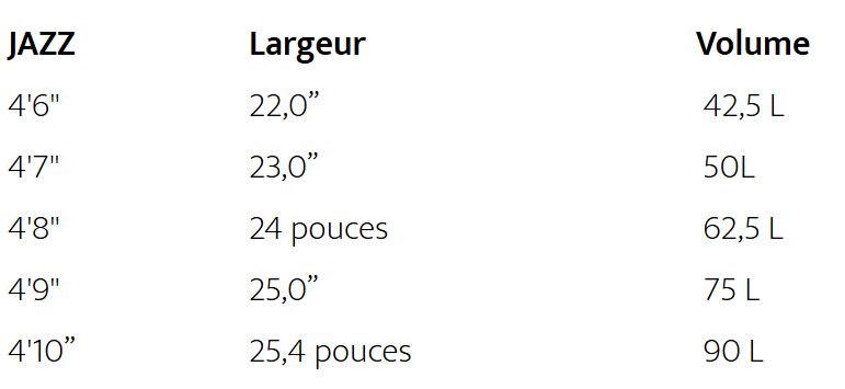 Tailles de la planche Appletree Jazz :