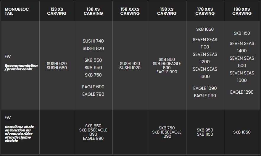 Taille du monobloc F-one Tail carving 2026 :